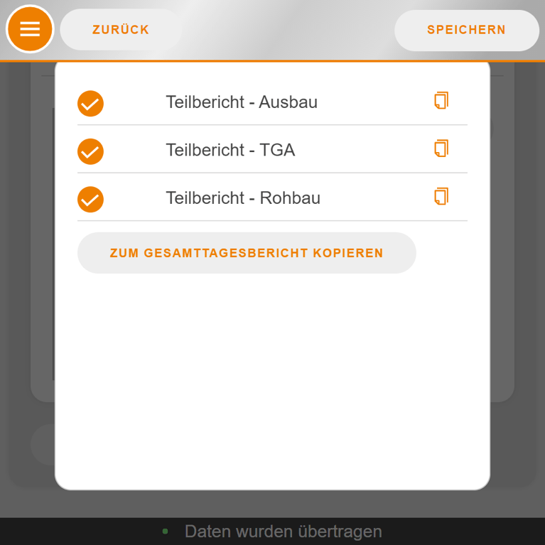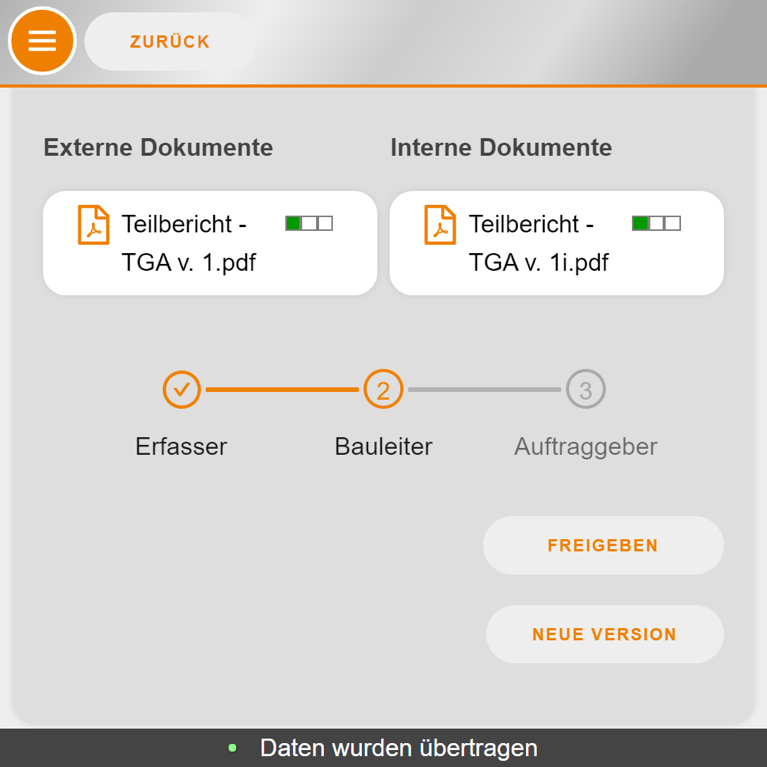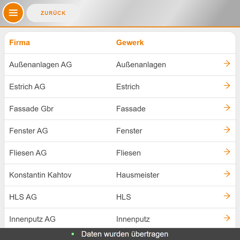 Mit Bau-Tagebuch können Sie die tägliche Protokollierung aller relevanten Informationen zum aktuellen Stand der Baustelle schnell und bequem von unterwegs erledigen. Bereits digital vorhandene Daten wie Witterung oder Baubegehungen werden einfach übernommen. Jeder Beteiligte kann ein eigenes Tagebuch anlegen, dessen Angaben in einem übersichtlichen Tagesbericht zusammengefasst werden können. Über ausstehende Aufgaben werden Sie automatisch vom System benachrichtigt.