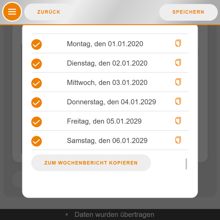 - Automatische Übernahme der Daten vom Vortag